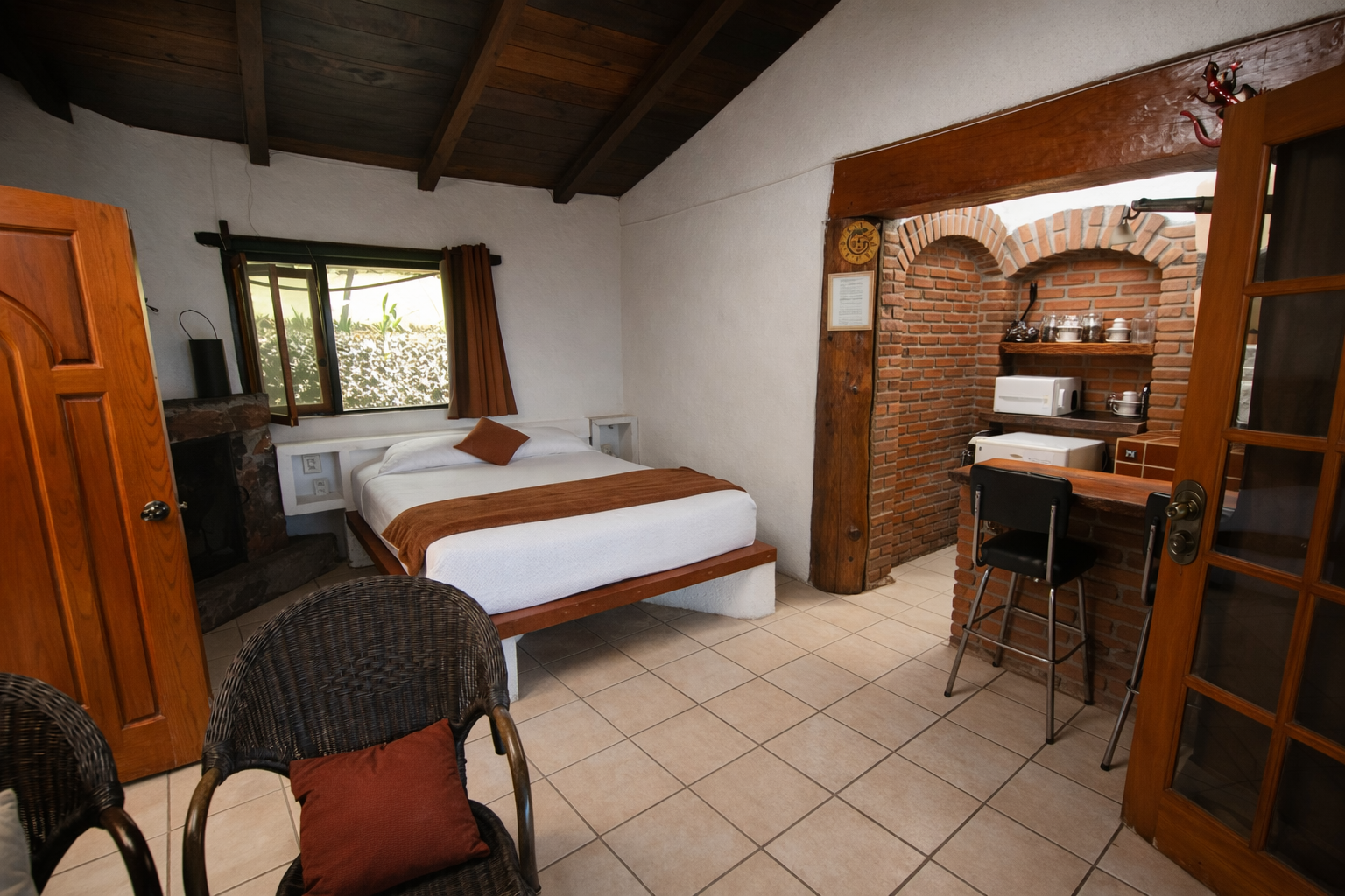 La Entrada es una cabaña para dos personas, ubicada en la zona más privada del complejo, ideal para el descanso y la discreción. Cuenta con cama Queen, chimenea y baño con tina de hidromasaje, creando un ambiente cálido y relajante. Dispone de cocineta equipada y acceso con estacionamiento propio, garantizando total independencia y privacidad. A pesar de su ubicación reservada, se encuentra a pocos pasos del área de alberca con vista al lago y amenidades.