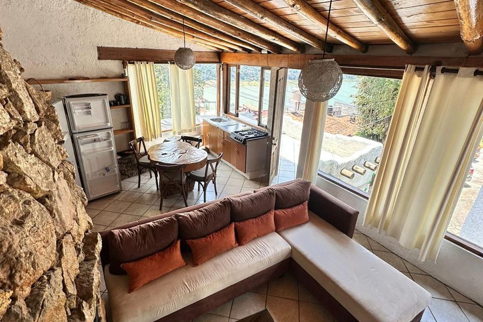 Las cabañas grandes son hermosas, las otras no tanto, eso si muchas escaleras, así que piensen en llevar a su abue 👵🏻 la vista desde ahí es hermosa hacia el lago pero el rumbo no es el mejor y la calle donde esta la entrada está más empinada que el Everest! Batallas mucho para subir y meter el coche a la cochera. Eso si la atención, limpieza todo el trato muy cordial y amable con el encargado.